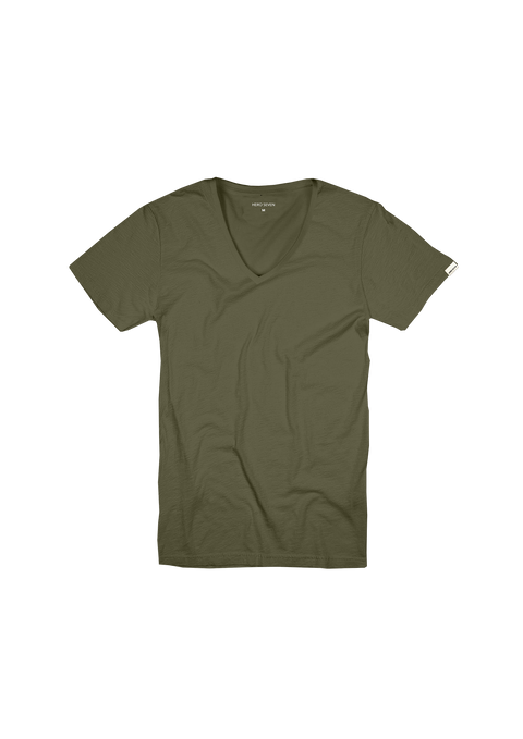 T-SHIRT BASIC COL V - BURNT OLIVE